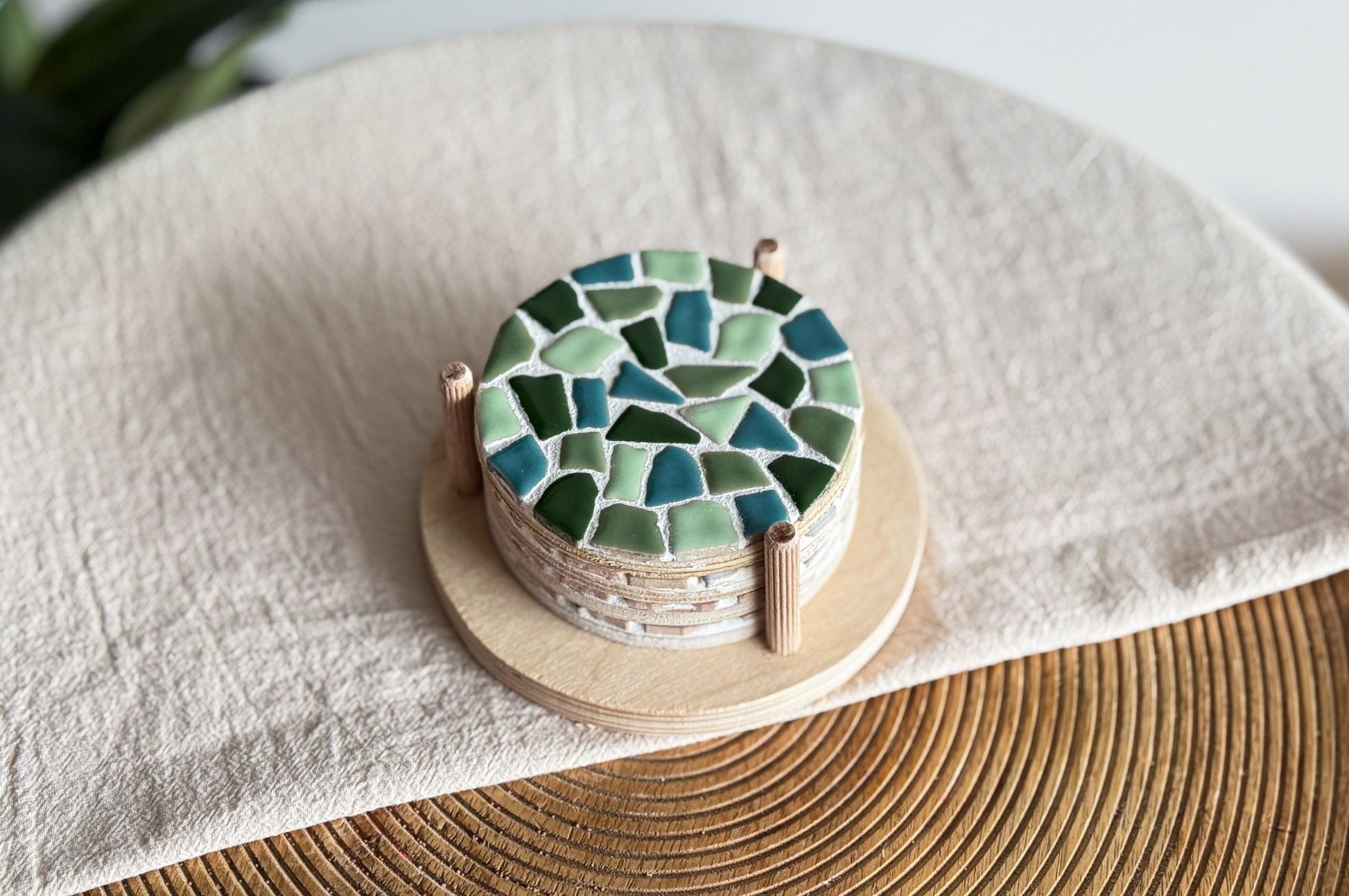 Creëer je eigen unieke mozaïek onderzetters met dit complete mozaïek pakket!. Dit DIY pakket bevat alles wat je nodig hebt om vier houten onderzetters en een bijpassende houder te versieren met prachtige mozaïeksteentjes in jouw favoriete kleurmix.