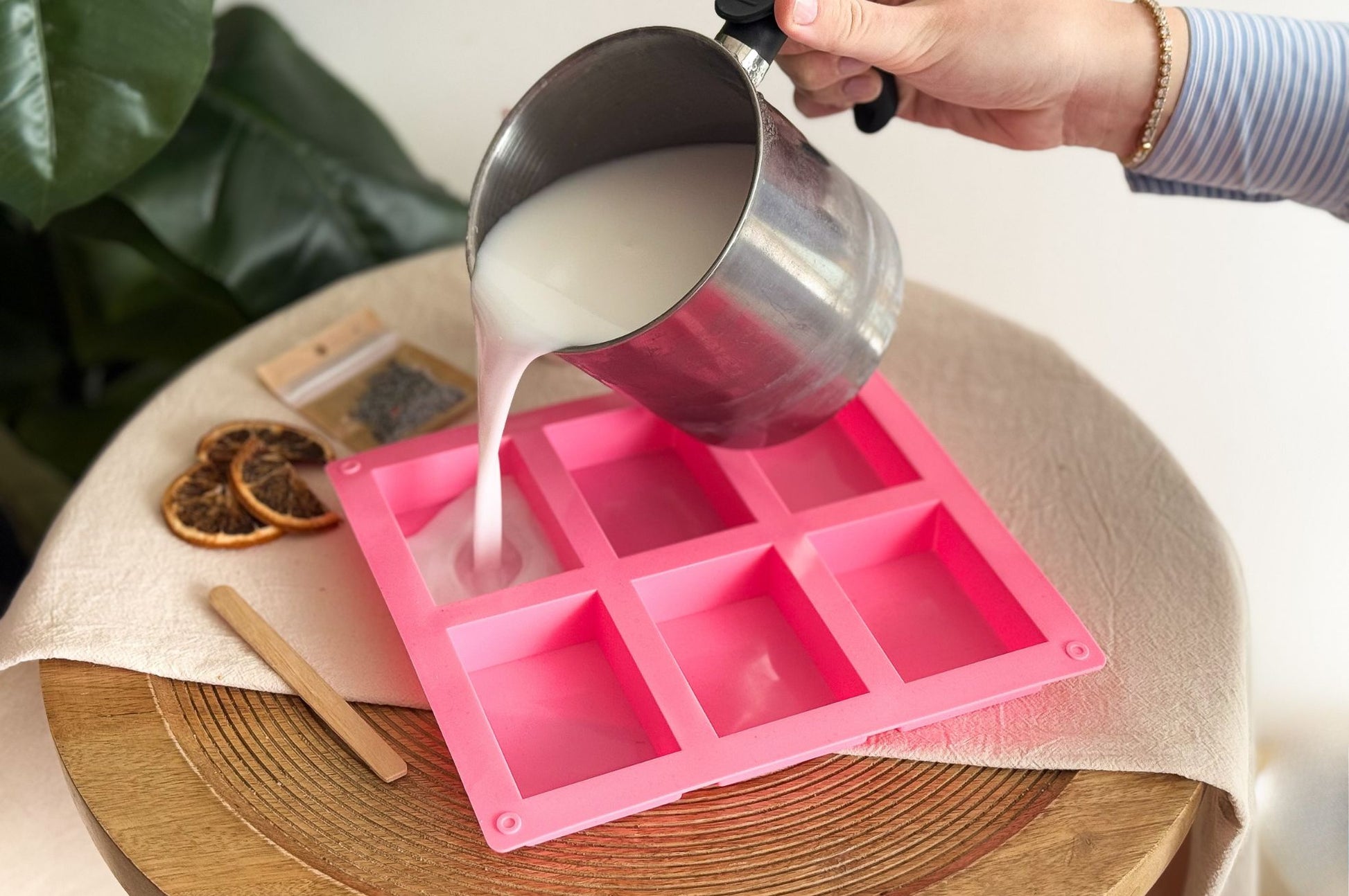 Deze complete zeep maak set is geschikt voor iedereen die zelf zeep wil maken zonder ingewikkelde technieken. De zeepjes zijn niet alleen fijn in gebruik, maar ook prachtig als decoratie in de badkamer of keuken. Dankzij het meegeleverde jute touw maak je er eenvoudig een handgemaakt cadeautje van.